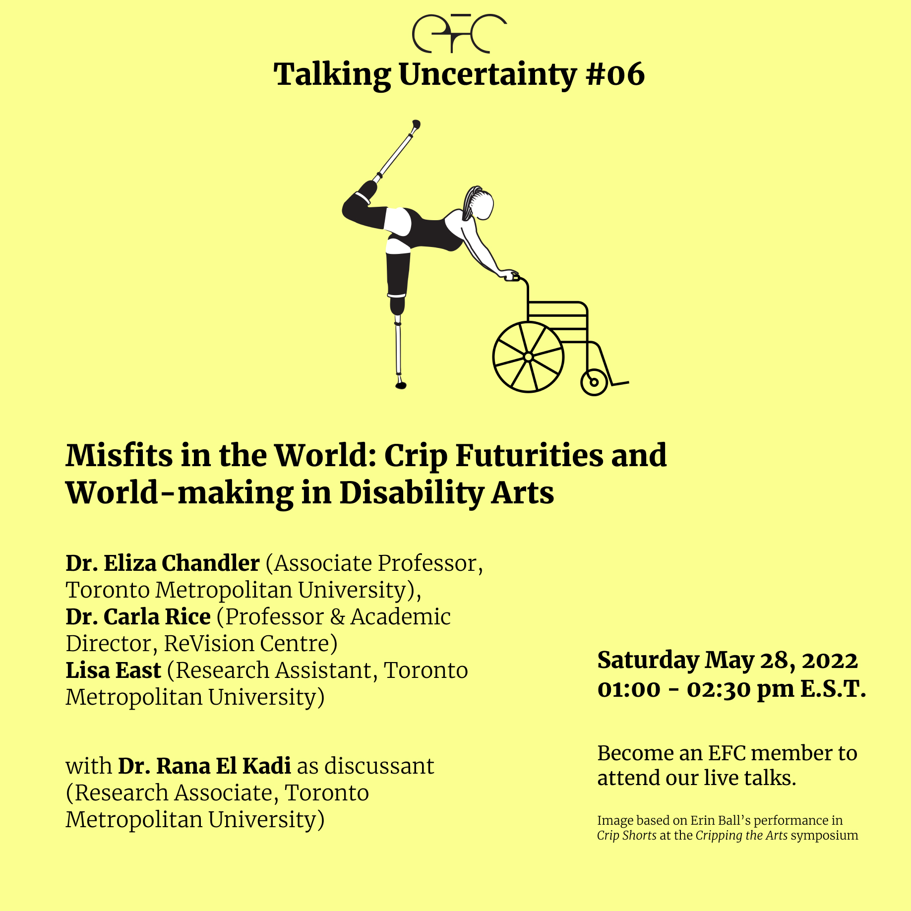 Join us for Emergent Futures CoLab's (EFC) for its 6th "Talking Uncertainty" session entitled "Misfits in the World: Crip Futurities and World-making in Disability Arts!"